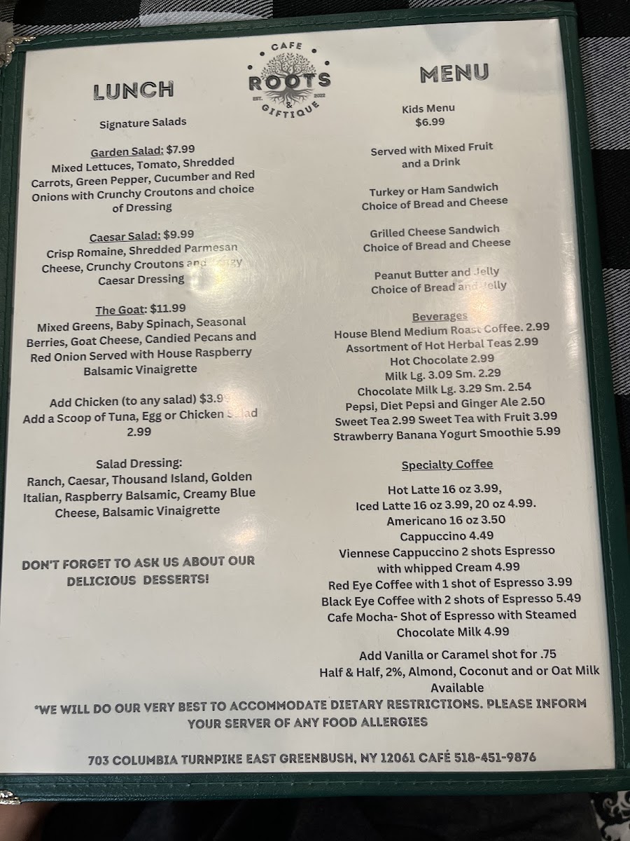 Welcome to Roots Cafe & Giftique, a delightful gem located at 705 Columbia Turnpike, East Greenbush, NY 12061. This charming cafe is more than just a place to grab a bite; it’s an experience wrapped in warmth, creativity, and mouthwatering flavors. Whether you're looking for a cozy spot to start your day or a comfortable nook for a leisurely lunch, Roots Cafe is the ideal destination.